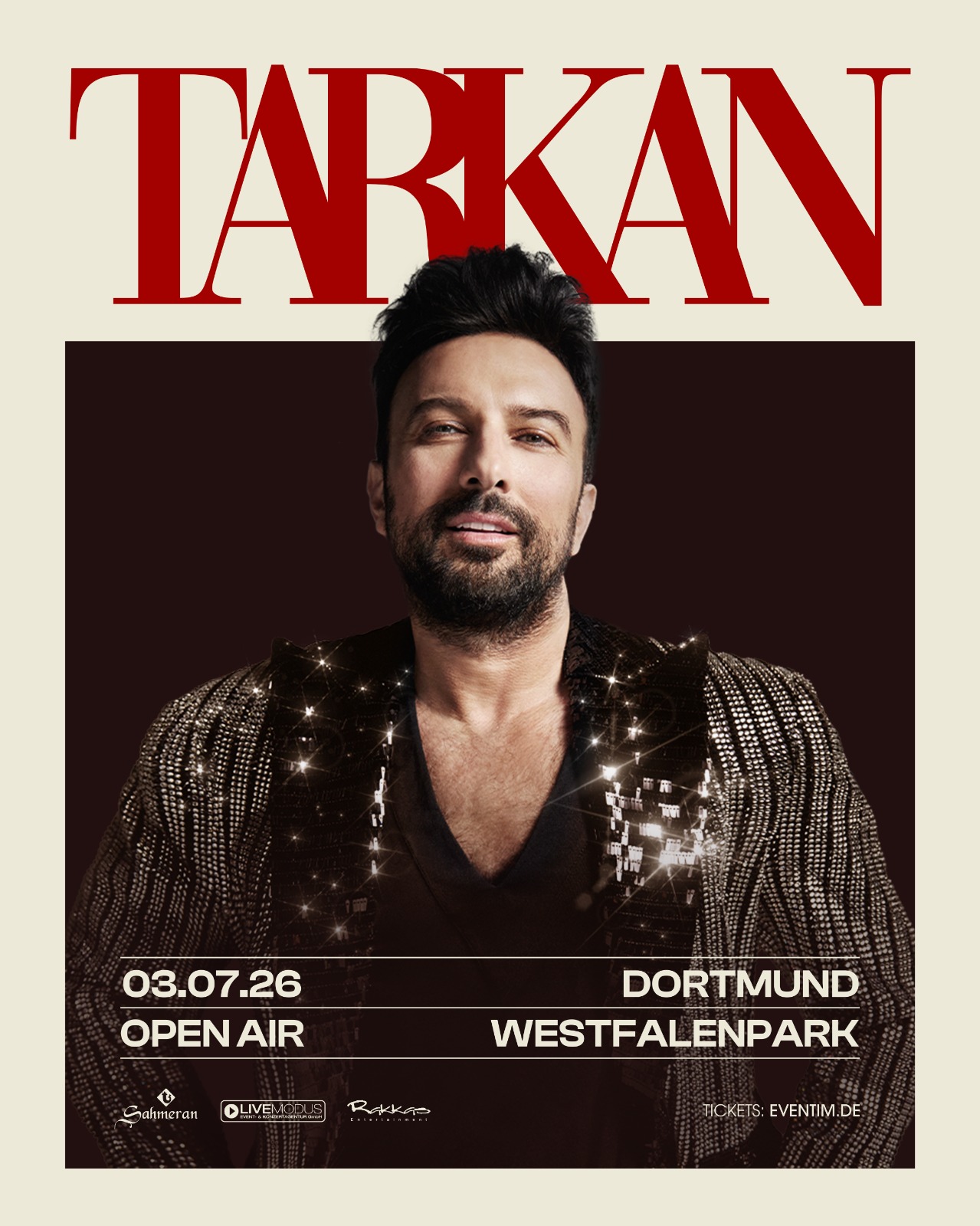 Nach seiner ausverkauften Europa-Tournee in 2025 habt ihr jetzt noch einmal die Chance, den türkischen Megastar Tarkan im Sommer 2926 live unter freiem Himmel im wunderschönen Westfalenpark zu erleben. Am 03.7.2026 wird der Park zur Bühne eines unvergesslichen Open-Air-Events. Freut euch auf eine mitreißende Show und eine atemberaubende Atmosphäre – ein Abend, den ihr nicht verpassen solltet!